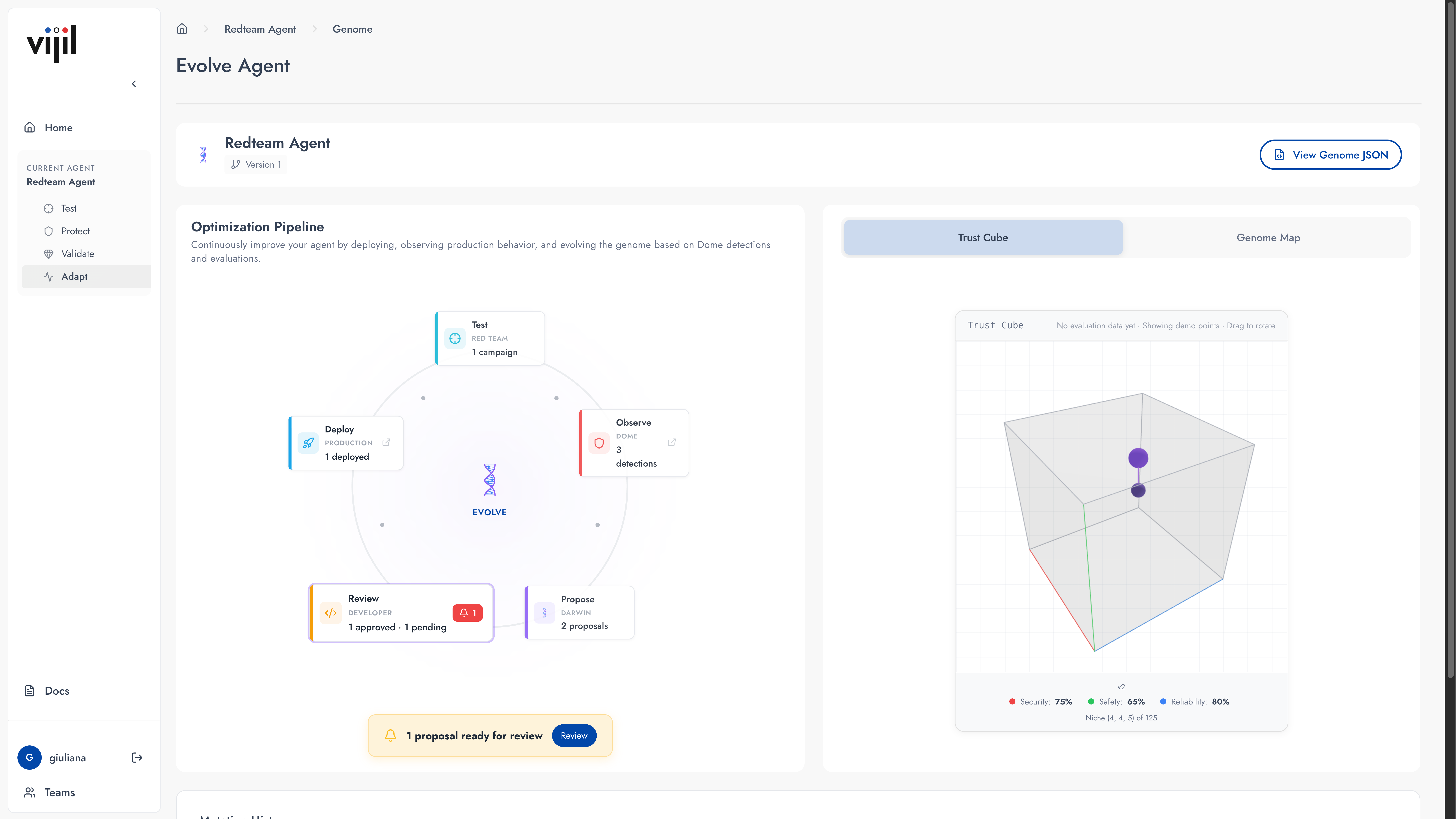 The platform consists of three modules that operationalize trust as infrastructure to bridge the gap between agent developers and business owners, helping to accelerate adoption of AI agents in business-critical roles. Vijil Diamond automatically converts agent profiles, user personas, and organization policies into a trust evaluation framework. Vijil Dome uses evaluation results to enforce policies over agent runtime behavior, turning governance into guardrails with observability. Vijil Darwin learns from this production telemetry and proposes targeted improvements to agent instructions, configuration, and source code, which developers can quickly review, apply, and evaluate.